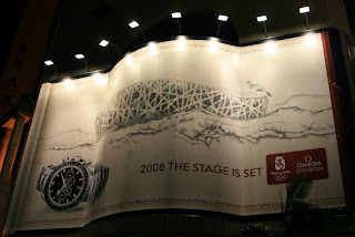 Ya queda menos, tan sólo 3 días para el comienzo de las Olimpiadas. El domingo por la noche por Central, en una de las fachadas donde cada poco cambian publicidad de distintas marcas, pude ver este gigantesco anuncio de Omega, que también es el cronometrador oficial de los Juegos.