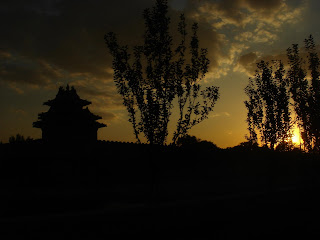 Con mis compañeras una vez dentro, pasada la puerta de Tiananmen antes de entrar en la Ciudad Prohibida. Por dentro es inmenso, montones de habitaciones y muestras de jarrones, utensilios… de las distintas dinastías. Como unas 2 horitas de paseo por dentro, pero merecen la pena. Y pues a la salida, que casi ya iba a atardecer, está foto tan guapa que me salió, jeje 🙂